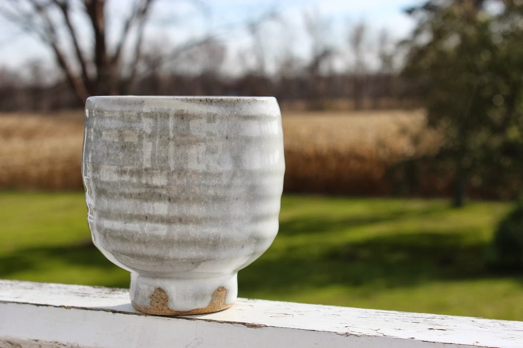 I make straightforward pots: cups and bowls with a smattering of other functional pieces thrown in. I keep fussiness to a minimum and I focus on simple and quiet forms that I think speak honestly. These are glazed and fired to cone 1 (2100F) in an oxidised atmosphere from a small electric kiln.