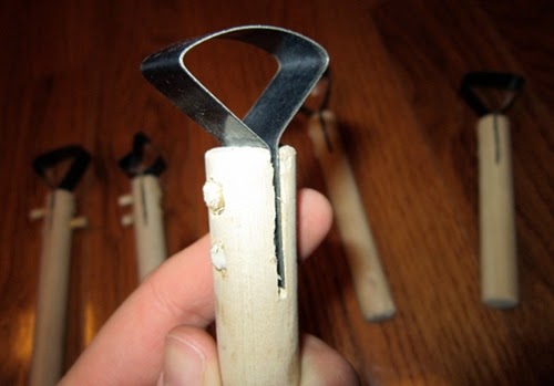 Have you ever wanted to fashion your own trimming tools for trimming your pots? There are many different things you can use to trim clay, but the loop tool design is one of my favorites. This post will show you how I made my own loop tools using some found steel strapping and some wood.